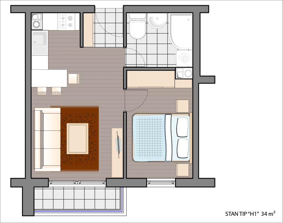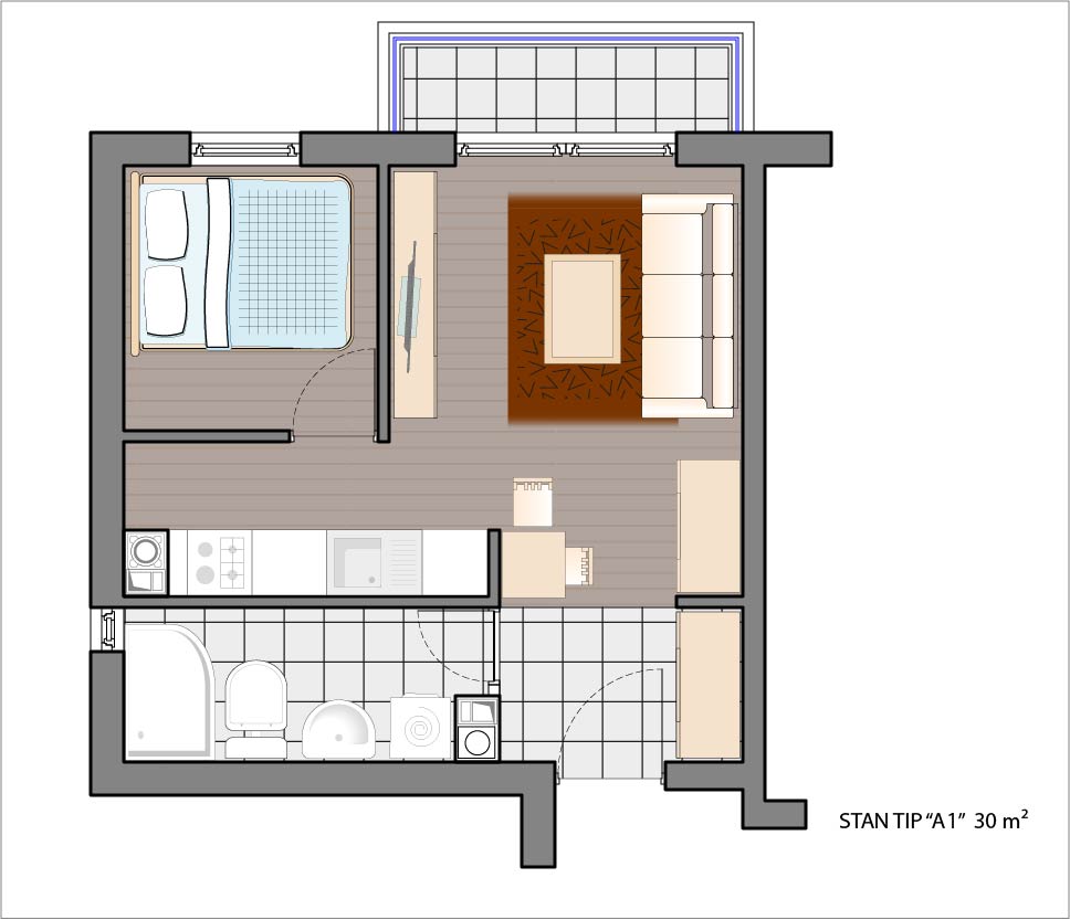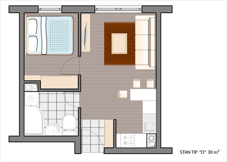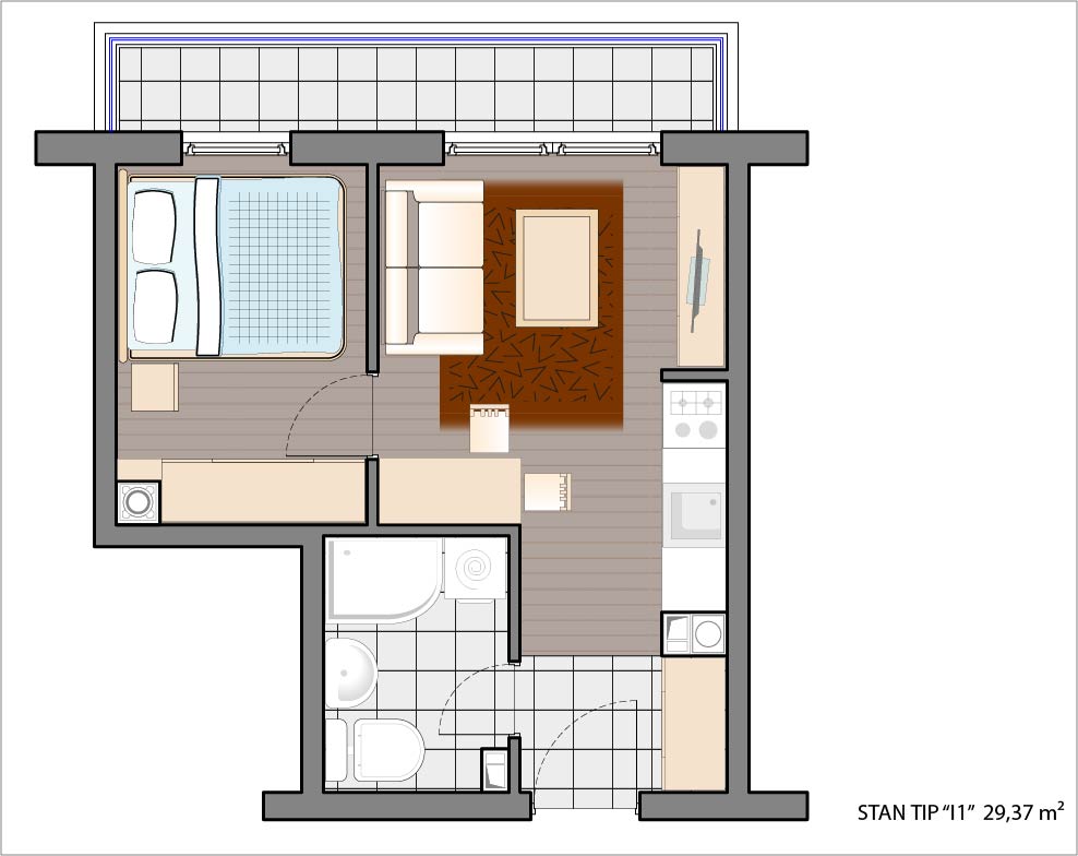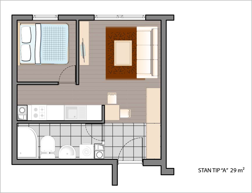 Dvosoban stan 29,37 m2.
