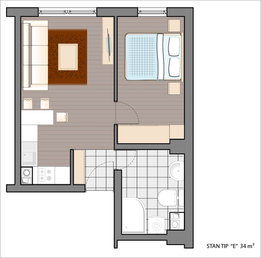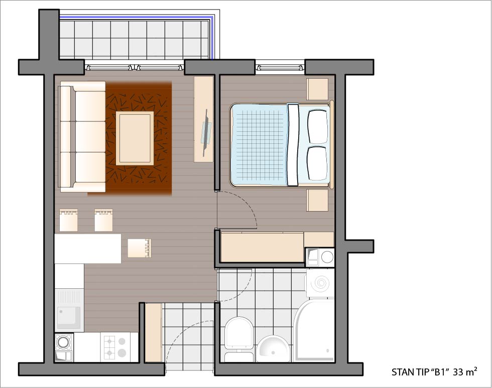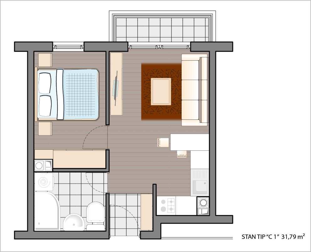 Dvosoban stan 31,79 m2.