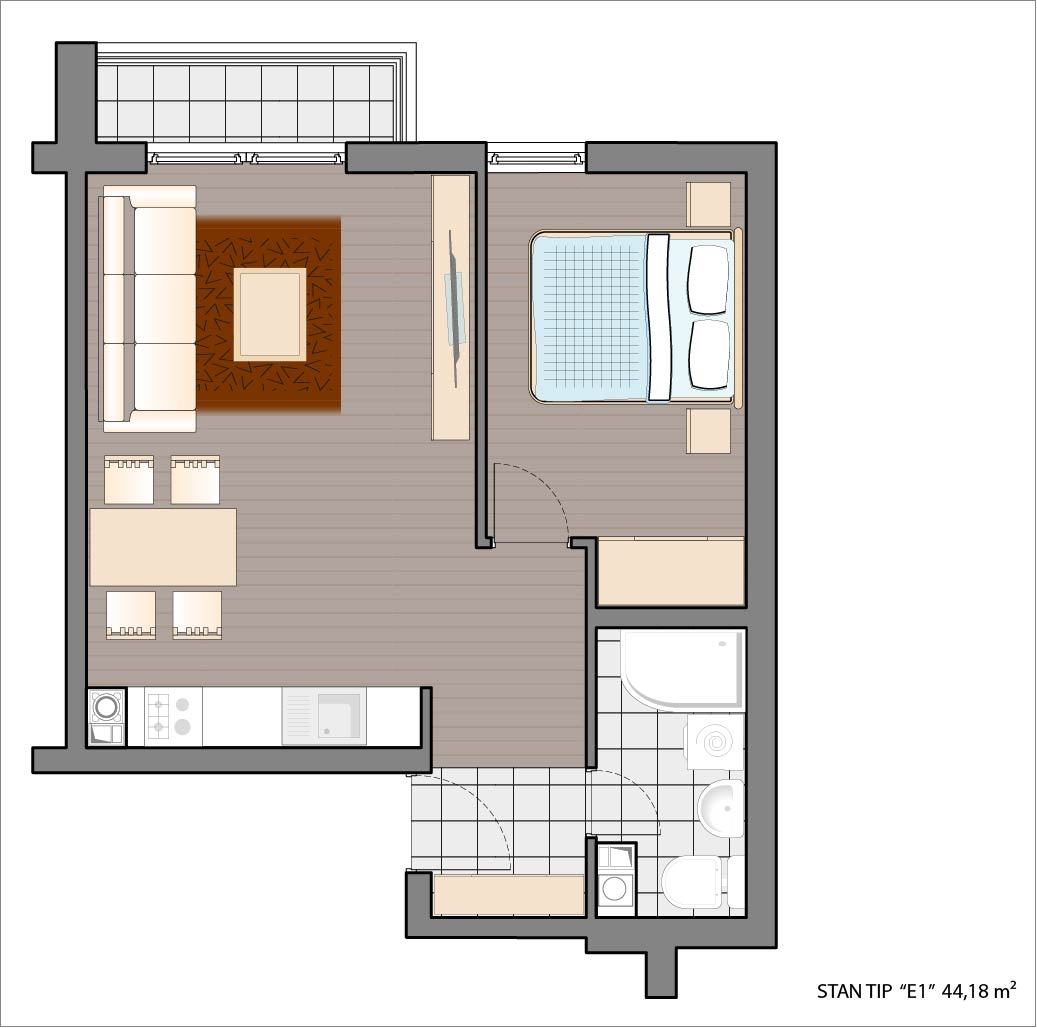 Dvosoban stan 44,18 m2.