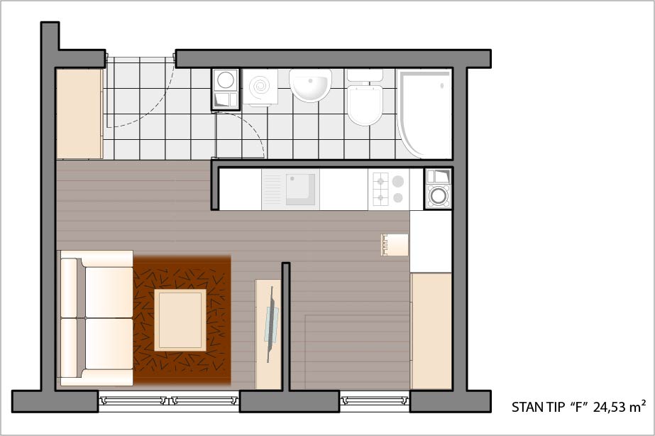 Jednosoban stan 24,53 m2.