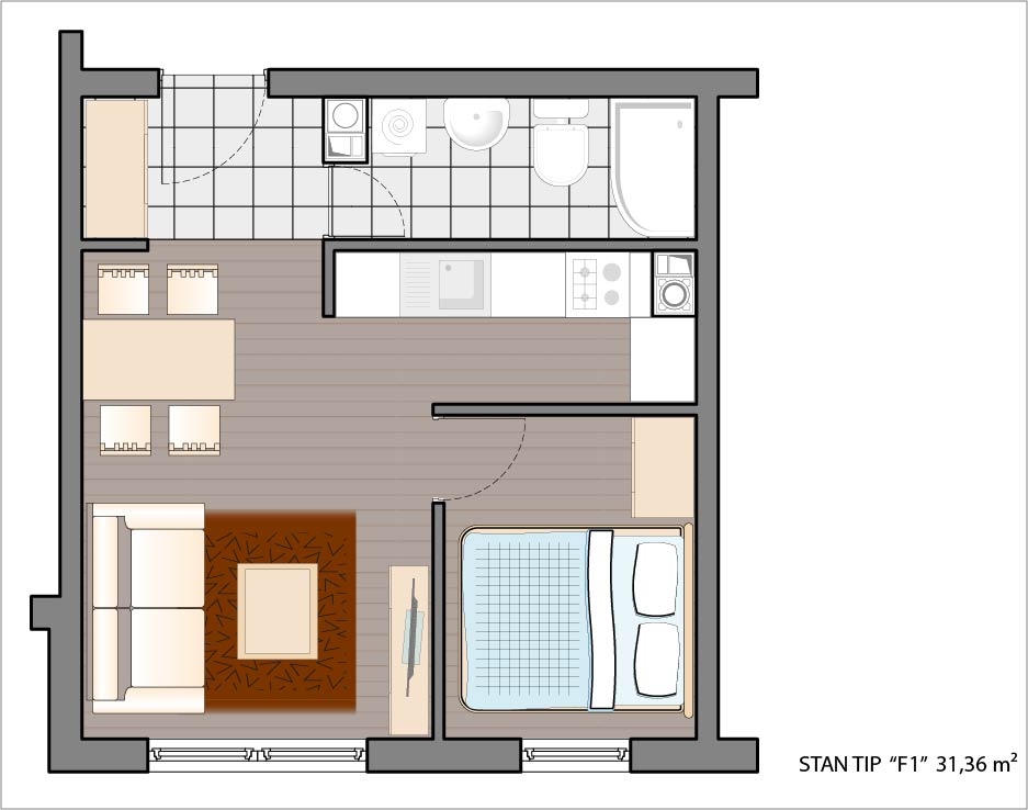 Dvosoban stan 31,36 m2.