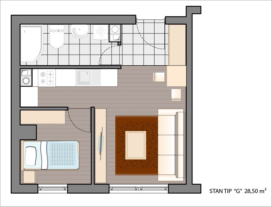 Dvosoban stan 28,50 m2.