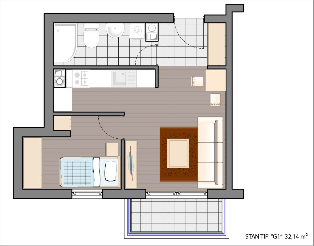 Dvosoban stan 32,14 m2.
